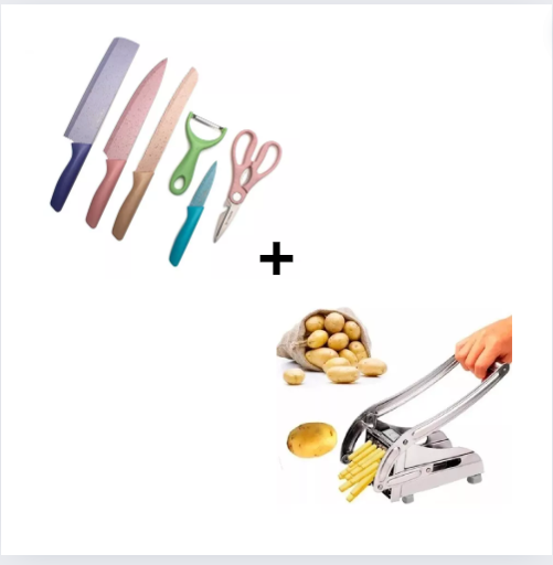 Juego de Cuchillos 6 Piezas + Cortador de Papas Profesional