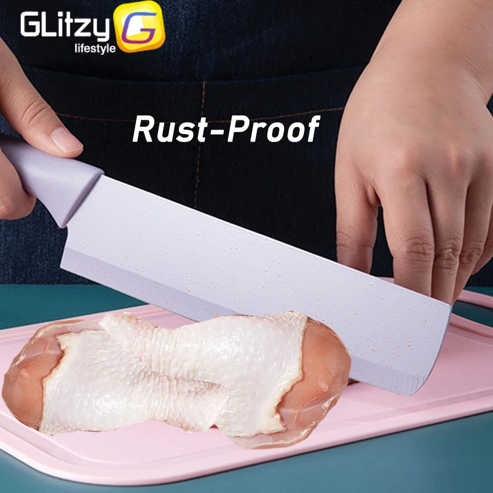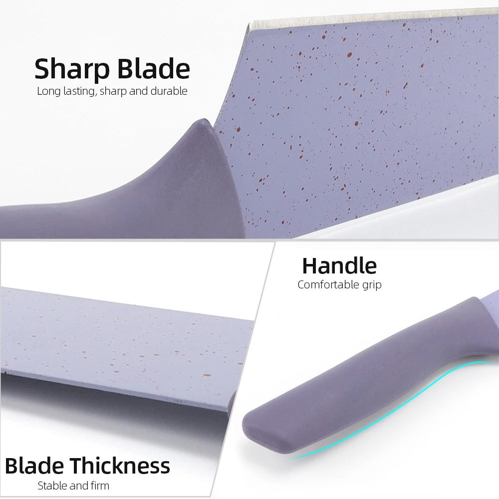 Set completo de cuchillos fabricados en acero inoxidable de alto carbono, diseñado para cubrir todas tus necesidades de picado y corte.